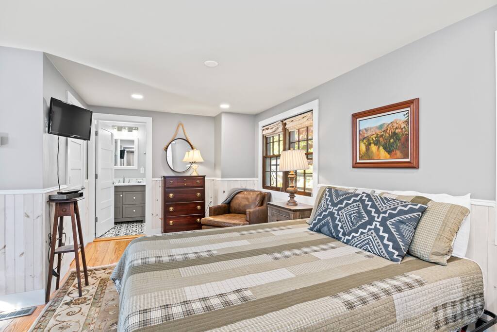 This pet-friendly getaway is lake-adjacent getaway with beautiful water views and updated amenities.