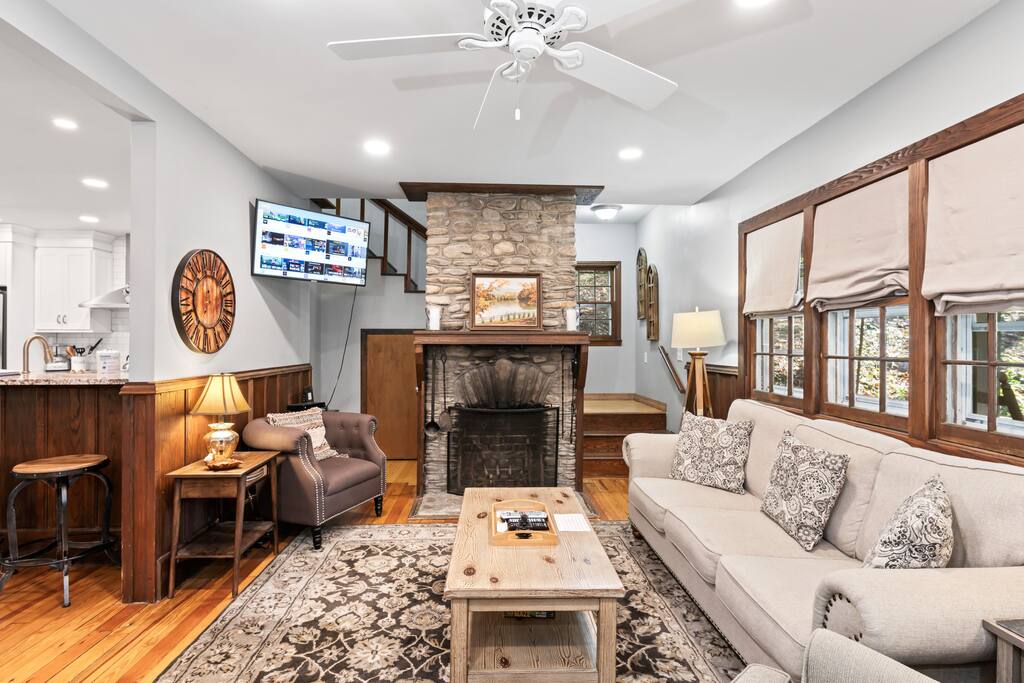 Experience the beauty of the lake while enjoying modern comforts and bringing your furry friend along! Renovated fully in 2018 with a full front porch, rocking chairs, and swing, this cabin brings peacefulness to guests and is geared towards families.